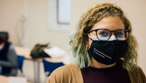 La gaditana María Sanromán, intérprete de lengua de signos lleva más de 10 años “diciendo cosas con las manos”. Gracias a ella, Silvia, sorda profunda de nacimiento, puede ser partícipe de la clase. La ILSE no lleva mascarilla y, la majorera, se la baja cuando quiere intervenir. “Si ella la tuviera puesta no podría, leo los labios, hay muchos signos similares y necesito la vocalización”, explica Silvia mientras dibuja sus sensaciones en el aire.