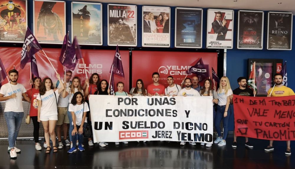 la huelga convocada por la mayor parte de la plantilla y abriera los multicines, pese a que solo pudo atender a los espectadores, aún con la llamada Fiesta del Cine en vigor, un trabajador, en concreto la gerente de este equipamiento cultural privado. "Los empleados de Yelmo Cines Jerez queremos manifestar que no hemos sentido que la empresa esté respetando nuestro derecho a huelga, derecho que hemos visto vulnerado, amedrentado y condicionado en algunas ocasiones. Queremos expresar nuestra absoluta indignación ante la apertura del cine con uno o ningún trabajador disponible y sin el personal de cine necesario para actuar en caso de emergencia o evacuación", han abundado en un comunicado remitido a los medios.Al tiempo que han agradecido los comentarios de apoyo recibidos, han querido insistir en la "falta de voluntad negociadora de la empresa" para revertir la precaria situación laboral que vienen sufriendo. "Creemos que las reclamaciones por las que se está luchando en esta huelga son las mínimas prestaciones que una empresa del calibre de Yelmo-Cinépolis puede proporcionar a sus trabajadores", han asegurado. Desde CCOO, el secretario comarca Rafael Tejada ha calificado de "éxito" la primera parte de las movilizaciones, que se prolongarán con otros seis días de paro a lo largo de este mes de octubre, sin descartar que puedan llevarse más allá de esas fechas. Para este mismo viernes, además, y dentro de la celebración del Día Internacional de Trabajo Decente, la central sindical en Cádiz ha convocado una concentración para este viernes, a las diez de la mañana en la plaza del Arenal, en apoyo de este colectivo, "muy joven y muy precario".La empresa ha asegurado que tiene abierta una mesa de negociación sectorial con los sindicatos CCOO y UGT para dar luz a un nuevo convenio colectivo sectorial que mejore las condiciones de los cerca de 300 trabajadores del sector en Cádiz, mientras que asegura que aplica a sus trabajadores condiciones laborales "conformes a la legalidad vigente". Ante esta posición, los trabajadores recuerdan que dicho convenio sectorial engloba a todos los cines de la provincia de Cádiz, donde se encuentra actualmente un solo Yelmo Cines, el de Jerez, "el cual carece de competencia ya que abarca cifras de clientes muy por encima de las que tienen los demás cines de la provincia".""La empresa se mantiene en que movamos el convenio sectorial junto a estos otros cines de la provincia teniendo constancia de que los trabajadores llevamos intentando mover este convenio desde hace más de un año sin ningún resultado. Esta negociación se llevó a cabo durante varias reuniones con dichos cines, no solo una, pero fue imposible llegar a un acuerdo o punto de encuentro debido a que los beneficios de las empresas implicadas eran muy dispares y no pueden ser comparados con los que obtiene Yelmo Cines Jerez", han añadido. Además, afirman, "conseguir llegar a un acuerdo sectorial con las demás empresas, si es que fuera posible, supondría un tiempo ilimitado de negociaciones que podría prolongarse en los peores casos hasta más de un año, y en ese tiempo ellos nos seguirían pagando un salario de poco más de cuatro euros la hora trabajada".Del mismo modo, los empleados "queremos hacer constar que se le plantearon varias opciones a la empresa para conseguir un acuerdo satisfactorio para ambas partes, incluido un convenio transitorio que mejorara las condiciones actuales de los empleados de forma temporal hasta que se consiga consolidar el convenio sectorial". "Yelmo Cines no se planteó ni por un momento aceptar ninguna opción que no fuera la movilidad de este convenio provincial, dilatándolo en el tiempo y dejándonos muy claro que