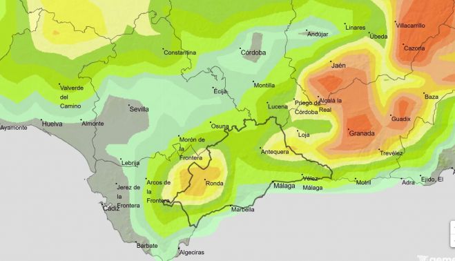 A partir de ese núcleo, las probabilidades comienzan a descender de forma progresiva. Aun así, siguen siendo relevantes. En Ubrique y El Bosque el mapa marca más de un 50%, mientras que al alejarse del punto central se mantiene un 30% en municipios como Arcos de la Frontera, Morón, Osuna, Jimena de la Frontera, Estepona o Marbella, estas últimas en plena costa.