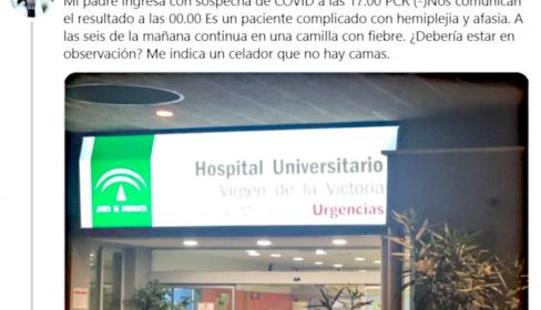 La situación es la siguiente: su padre, un hombre mayor y con afecciones previas, es sospechoso de coronavirus. Llegó alrededor de las 17 horas del lunes al hospital. A las 00 del martes le dan los resultado de la PCR y da negativo, pero a las seis de la mañana, últimos mensajes de Mariló Maldonado consultados a las 9 horas del martes, todavía continuaba en una camilla con fiebre.