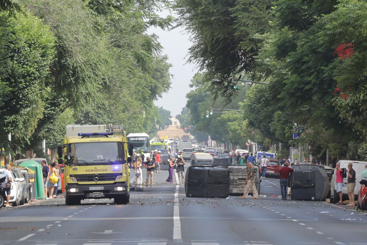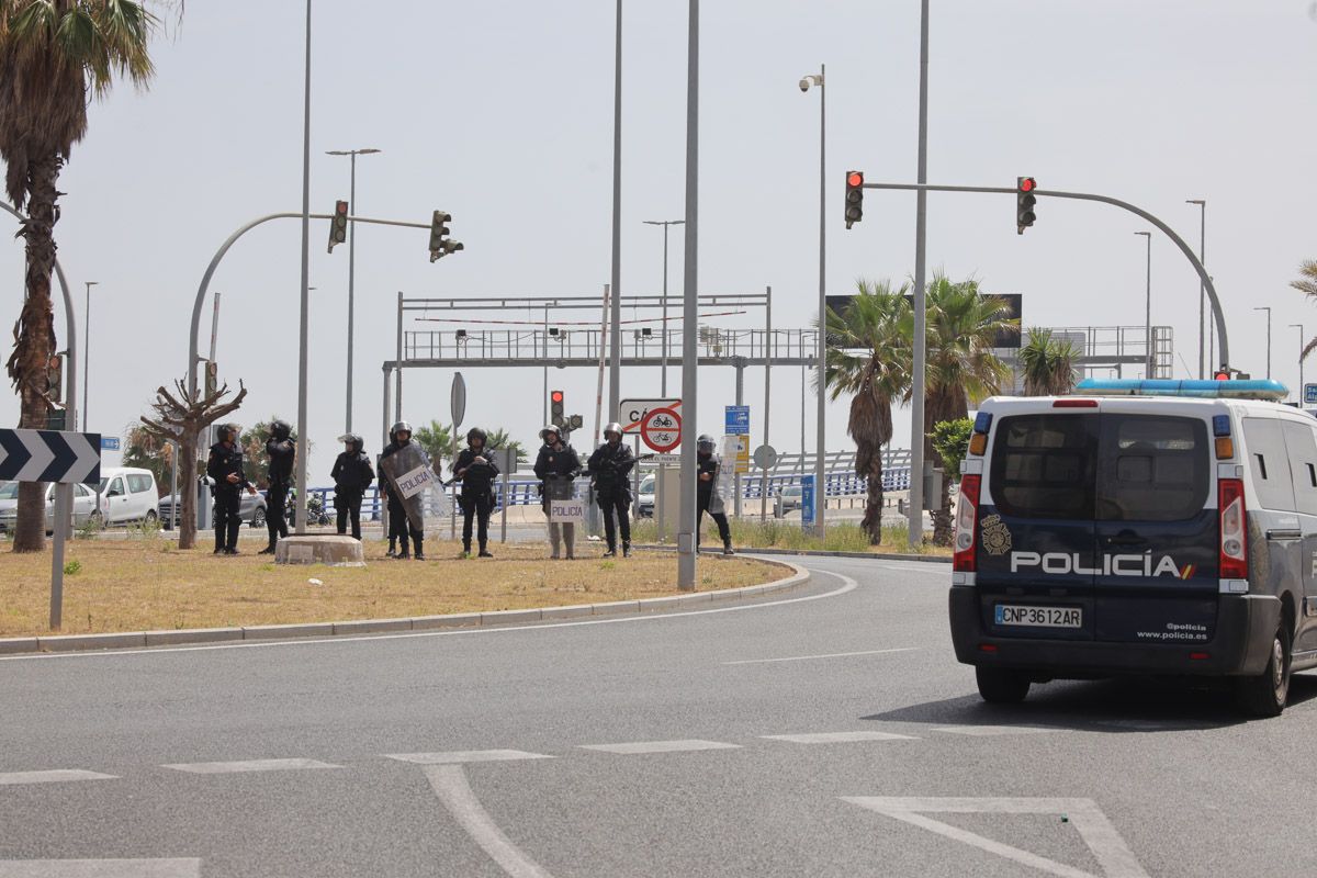 La tensión comenzó con el amanecer, cuando los dos puentes sobre la Bahía y la carretera industrial de Cádiz quedaron cortados por las llamas. La "tensión", como la califican los sindicatos, se trasladó antes de mediodía a la avenida central de Cádiz, el barrio de Loreto y el entorno del estadio Nuevo Mirandilla, donde se registraron los incidentes más graves.