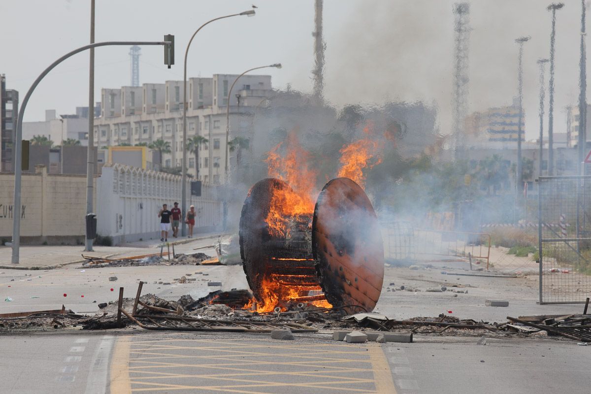 La primera jornada de una nueva huelga en el sector del metal en la provincia de Cádiz, la segunda en tres años, se salda con las imágenes de barricadas ardiendo, avenidas cortadas, puentes cerrados, atascos de tráfico y enfrentamientos entre manifestantes y policías.