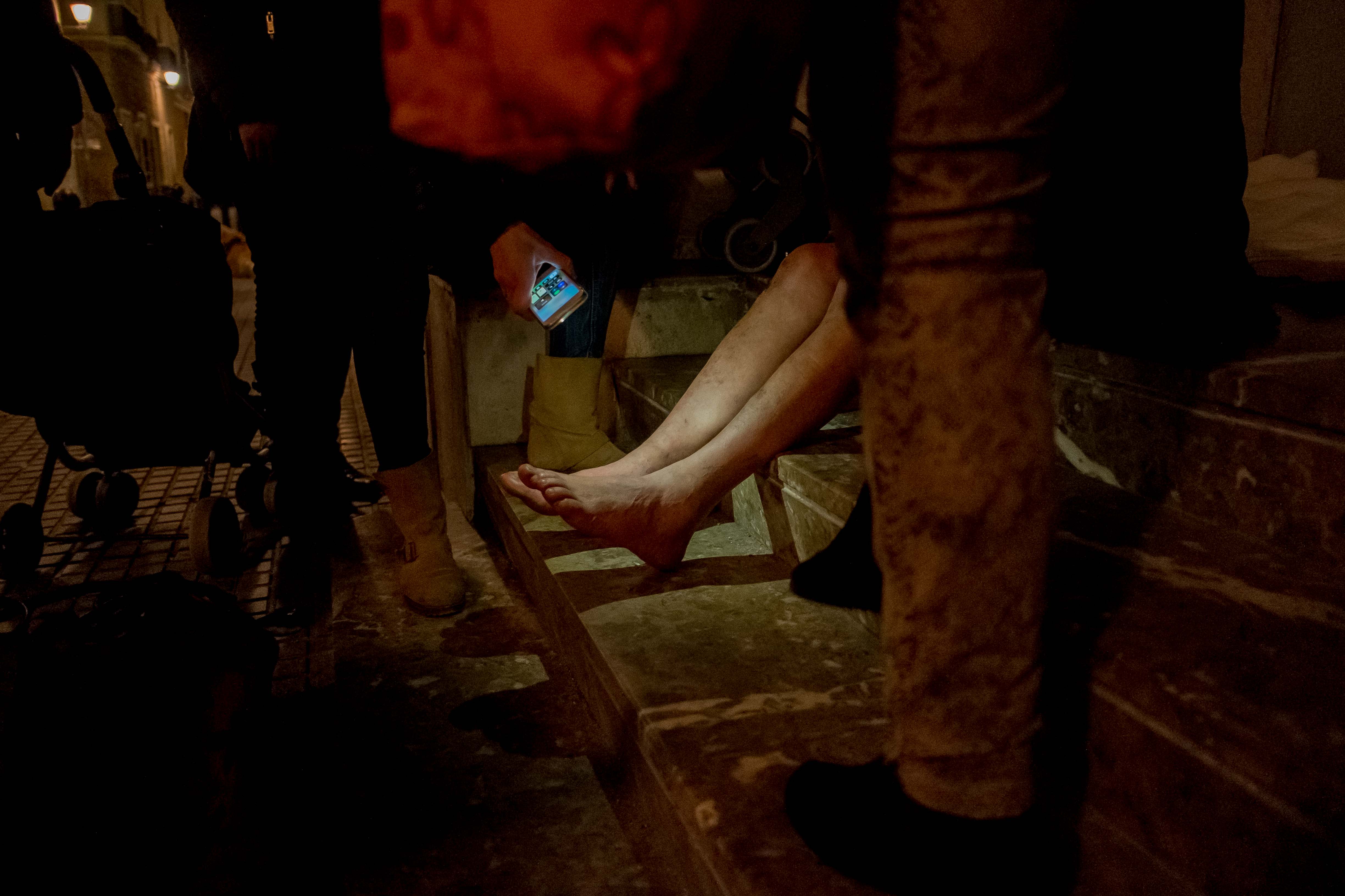El grupo empieza a charlar con las voluntarias, como si formaran parte de una pequeña familia. Esto retrasa un poco la salida, pero esas 10 -quizás 15- personas ya se han ido con su cena y su ropa interior nueva. "Ha venido un usuario que estaba muy contento, porque hace unos días nos dijo que necesitaba un teléfono móvil ya que se había roto el suyo. Estaba esperando una llamada del hospital porque lo tienen que operar y le preocupaba que no pudieran localizarlo. De un día para otro uno de los voluntarios consiguió un teléfono para él, y hoy ha venido a agradecérnoslo porque ahora está más tranquilo sabiendo que cuando lo llamen para la operación podrá responder", nos cuenta May mientras emprendemos el camino hacia la primera parada.