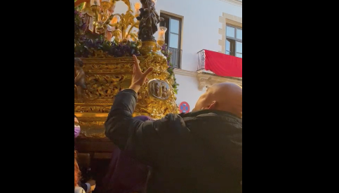 Lara ha cantado al Crucifijo de la Salud de regreso a San Miguel, y, un año más, ha cantando al Nazareno y a la Virgen del Traspaso. A pie de calle, como a él le gusta.