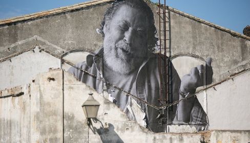Foto mural en Jerez de Fernando de la Morena, a quien este año la A.C.F. Luis de la Pica le dedica un homenaje, obra de Juan Carlos Toro.