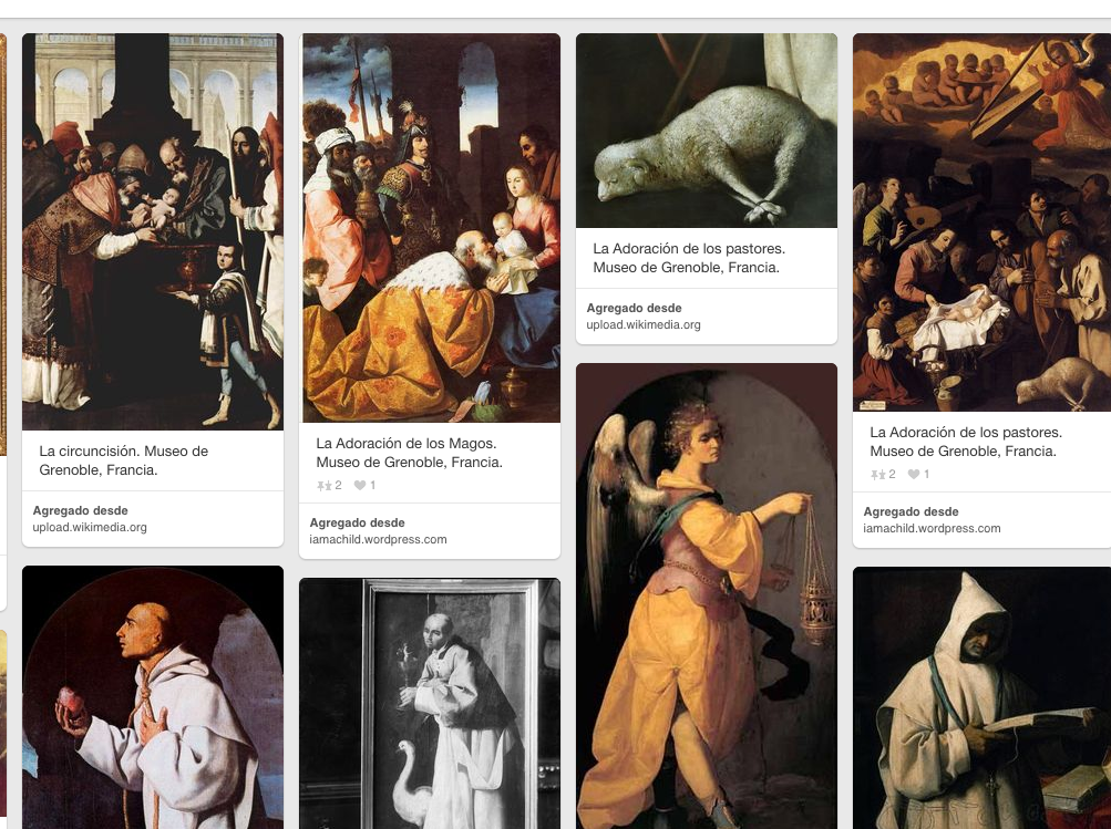 La respuesta a dichas preguntas daría para un largo (y apasionante) relato pero en esta ocasión me interesaba reunir aunque fuese “virtualmente” el conjunto de obras que Francisco de Zurbarán pintó para la Cartuja de Jerez. Ya en la década de los 80 del siglo XX se organizaron tres grandes exposiciones dedicadas a Francisco de Zurbarán en Nueva York, París y Madrid pero desconozco si en aquellas exposiciones se llegaron a reunir en una misma sala los 7 grandes óleos del retablo cartujano: Apoteosis de San Bruno (Museo de Cádiz), La Batalla entre cristianos y moros en el Sotillo (Metropolitan Museum of Art, Nueva York), La circuncisión (Museo de Grenoble, Francia), La Adoración de los Magos (Museo de Grenoble, Francia), La Anunciación (Museo de Grenoble, Francia), La Adoración de los pastores (Museo de Grenoble, Francia) y La Virgen del Rosario venerada por Cartujanos (Museo Nacional de Poznan, Polonia).