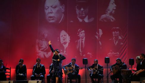 La fragua empieza a sonar. Martillean. Juan Garrido, que vuelve a presentar la fiesta, ya nos lo ha adelantado: la noche comienza con un homenaje al Tío Juane. Los herederos de su legado hacen acto de presencia, cantando por martinetes. Manuel y Pedro de la Fragua calientan motores. La fragua, recuerdan, presidirá el escenario durante toda la jornada. Herradura en mano, confiesa: “Esta es la herencia que me dejó mi abuelo, de mi abuelo pasó a mi padre y de nuestro padre, a nosotros, que se la dejaremos a nuestros hijos”. Además de Tío Juane, en el recuerdo también están Chocolate y Agujetas. El público, frío pero atento, aplaude. Juan Garrido vuelve al escenario y lo grita a los cuatro vientos: “¡Vamos a recordar a los monstruos de Jerez, como diría la Paquera!”. De Jerez y de toda Andalucía. El “tren del flamenco” que preside la primera parte del espectáculo dirigido por el propio Pedro Garrido Niño de la Fragua, parte desde Sevilla y continúa por Córdoba y sus provincias. Rubio de Pruna y Perico el Pañero recuerdan a Fosforito y Antonio Mairena. El tren viene de vuelta.