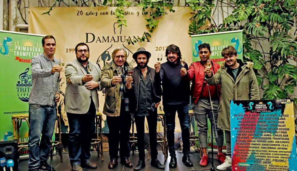 Solo hay que ver a Miki Gutiérrez para corroborar que solo le mueve la pasión. En un primer intercambio de impresiones, a poco más de una semana vista para que arranque una nueva edición de su criatura, este joven productor de eventos culturales jerezano se muestra cual capillita mirando al cielo un Martes Santo. Su máxima preocupación ahora mismo es la climatología y que la procesión de grandes nombres que reunirá la cuarta edición del festival Primavera Trompetera, el más madrugador de los macrofestivales españoles y que él impulsó de la nada, pueda desfilar sin inclemencias meteorológicas. El café-bar Damajuana ha sido el escenario elegido para la puesta de largo del cartel en la ciudad, con políticos y artistas celebrando el éxito de organización y auge del certamen. Una muestra que empezó en una discoteca con unos 2.500 espectadores y poco más de una docena de artistas, y ahora aspira a batir su propio récord y reunir en el Circuito de Jerez a más de 50.000 personas convocadas por un cartel con más de 60 nombres, entre ellos algunos tan significativos como los jamaicanos The Wailers (la banda mítica de Bob Marley) y el castizo Rosendo, que acaba de anunciar que deja la carretera.