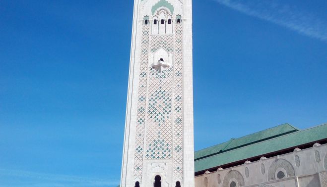 Con una hora menos llega la compañía de Jerez Puro a una Casablanca enérgica que se quita las moscas y los fantasmas de un desarrollo galopante con hoteles de cinco estrellas y anchas avenidas como las que conducen a su mezquita y al segundo minarete más alto del mundo musulmán. Coches y más coches dejan atrás a los carros de porquería que siguen tirando los desdichados del planeta. Pobres habrá siempre y en todas las esquinas del mundo aunque aquí, extrañamente y tras un rostro de cartón arrugado, todos parecen a punto de estallar en una gran sonrisa.