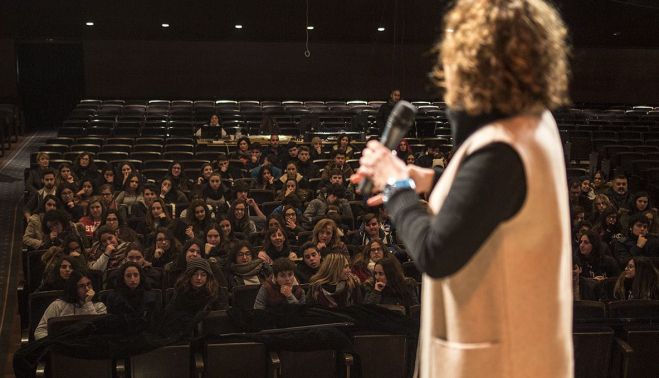 Un grupo de alumnos de los citados centros han asistido a una charla sobre este título verdiano impartida por Ismay Benavente, directora del Teatro Villamarta, mediante la cual se pretende acercar a estos jóvenes al género, desmitificar la idea preconcebida de que es necesario entender de ópera para asistir como espectador, al tiempo que satisfacer su curiosidad en todo lo relativo a la preparación de un montaje de esta envergadura.