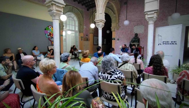 Sobre un blanco suelo de mármol, al solemne compás de un clarinete, bailan las sombras del patio florecido. Es viernes por la tarde, es junio y es Jerez, pero, a pesar de ello, el público expectante comienza a abarrotar las sillas y los bancos del colegio Miguel de Cervantes. A la mesa, gracias a la labor de la Asociación Cultural Pie de Página, está sentado el poeta santanderino Marcos Díez (XXIV Premio Internacional de Poesía Generación del 27) para hacernos una aproximación a este segundo volumen de la colección de poesía que tan bien edita José Mateos.