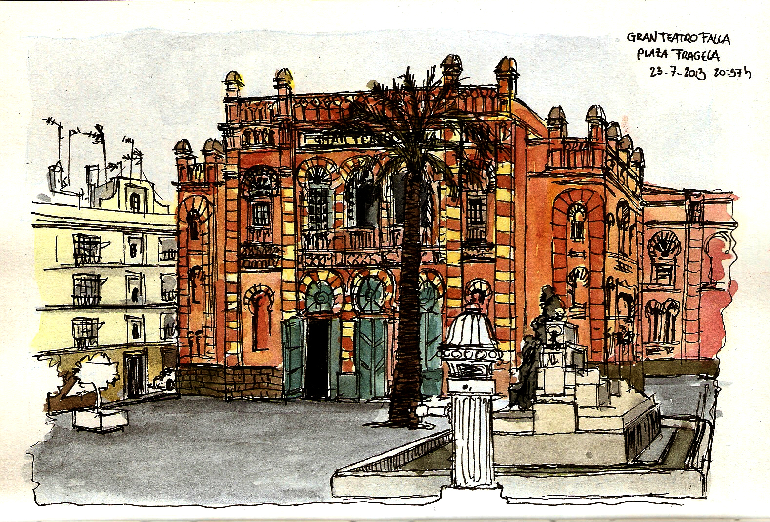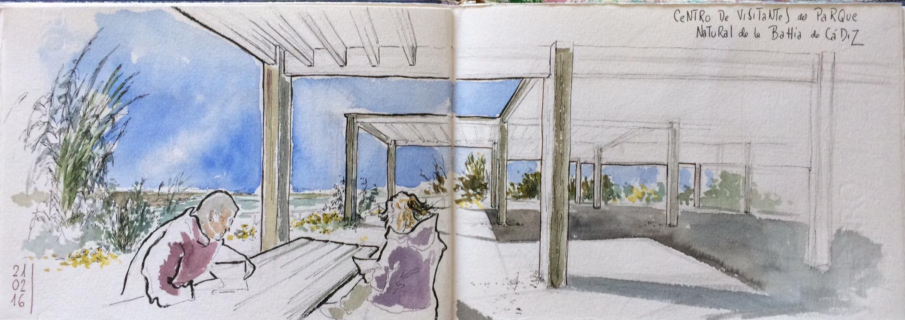 Saca de su mochila un cuaderno, despliega sobre su falda unos lápices de colores o quizás unas acuarelas. Juega con los materiales, prueba, esboza, experimenta mientras captura el paisaje cotidiano. Eso que miramos pero no vemos. O eso que en realidad vemos frente a lo que creemos ver. Escenas rutinarias, fragmentos del día a día, detalles en una cafetería o en un parque, perspectivas del patrimonio material o natural. Es la síntesis del ‘modus operandi’ del movimiento Urban Sketchers, fundado en 2007 por el periodista afincado en Seattle Gabriel Campanario y que a día de hoy se ha expandido vertiginosamente con comunidades por todo el mundo. Dos de las más de 50 que hay en España están en Cádiz: Urban Sketchers Bahía de Cádiz y Xerez Sketchers.