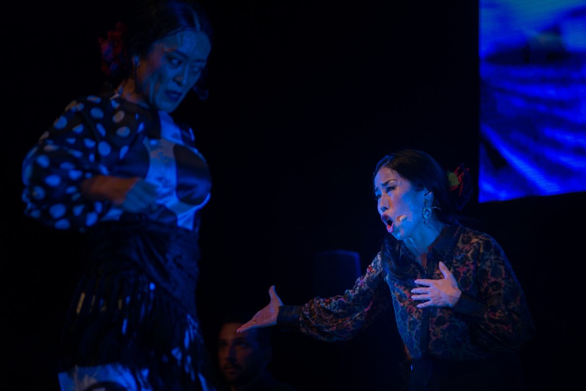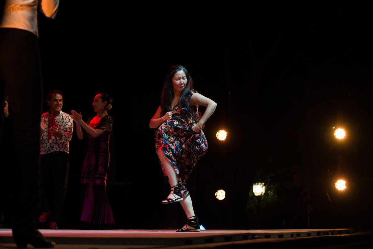 El espectáculo Jerez con Japón, con la dirección musical de David Lagos y la dirección artística de Javier Latorre, contó con el cante de Fernando de la Morena, David Lagos, Melchora Ortega, El Londro y Yuka Imaeda, con el baile de Andrés Peña, Tío El Zorri, Tía Juana Carrasco, Shoji Kojima, Shiho Morita, Mayumi Kagita e Hiroki Sato, la guitarra de Alfredo Lagos Jose Gálvez y Javier Ibáñez, y las palmas y percusión de Javier Peña, Carlos Grilo y Perico Navarro.