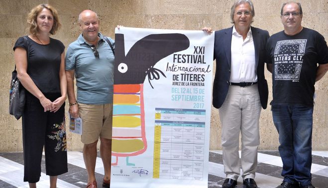 La Muestra Internacional de Títeres regresa seis años después donde lo dejó. Entre este martes y el viernes, el certamen cumplirá 21 años tras un parón inexplicable que dejó a la ciudad sin un proyecto cultural y artístico con gran acogida en la provincia. El teniente de alcaldesa responsable de Dinamización Cultural, Francisco Camas, junto a Kika González, concejala de Ganemos Jerez, y Diego Sánchez, de La Gotera de Lazotea Teatro, ha presentado una muestra que, como novedad, se celebrará en diferentes enclaves del centro de la ciudad pero también en las barriadas. El cartel lo conforma la participación de nueve compañías que pondrán en escena once títulos y ofrecerán un total de 28 representaciones. Las Fiestas de la Vendimia recuperan, de este modo, una oferta cultural y artística de primer nivel dirigida a los niños y las niñas, y que además implica animar a las familias a disfrutar de los espacios público, con una gran previsión de participación.