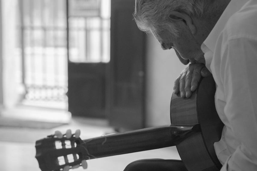 Manuel habla pausado. De su maestro Rafael del Águila dice que era “un personaje muy intelectual”, cuyo primero consejo que daba a sus alumnos es el mismo que ahora da él a los suyos: “Que no se obsesionen con ser profesionales, porque no necesariamente tenemos que serlo. A veces, chicos que tienen cualidades para ser profesionales no llegan, y tampoco es malo, pero tocan la guitarra a nivel de amigos, de fiestas privadas, de coros rocieros… Hay que tocar para disfrutar, porque la música es para disfrutarla, no para pasarlo mal”.