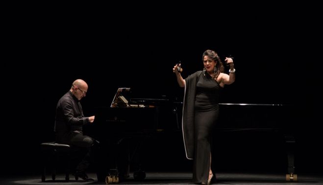 La primera parte del concierto ofrecido en el Teatro Villamarta, dedicado a obras de inspiración española, se abrió con dos obras de Pauline Viardot, cantante y compositora cada vez más presente en las programaciones de teatros y salas de concierto, incluido el Teatro Villamarta. Madrid y Les Filles de Cadix (muy cercana a la canción homónima de Leo Delibes) fueron el vehículo para que la mezzo-soprano, además de colocar la voz, mostrara ya desde el comienzo las cualidades que son asociables a su canto, desde la bella pastosidad del timbre a la infalible musicalidad que sostiene sus interpretaciones, además de un nítido e intencionado fraseo. Además, en la segunda de las páginas se acompañó ella misma con castañuelas de modo solvente.