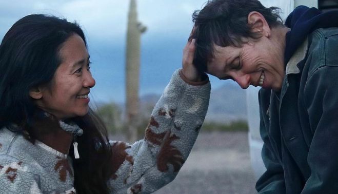 "Siempre he encontrado la bondad en las personas que me he encontrado por todo el mundo, así que este premio es para cualquiera que haya tenido la fe y el valor para aferrarse a la bondad que llevan dentro, y la de los demás, por muy difícil que resulte", afirmó Zhao al recibir el premio a la mejor dirección. La directora hizo historia al convertirse en la segunda realizadora en obtener el galardón después de que Kathryn Bigelow lo consiguiera por En tierra hostil en 2009.