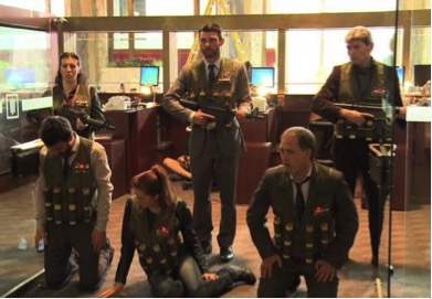 No es una película de persecuciones frenéticas o violencia gratuita. Tampoco hay un final de infarto y espectacularidad no es precisamente la palabra que mejor la define. En Cien años de perdón Calparsoro y su guionista, Jorge Guerricaechevarría (Celda 211, El niño), consiguen crear suspense echando mano de una suerte de macguffin, una caja de seguridad con información sensible. Tiene el pequeño defecto de anticipar pronto qué hay en esa caja, pero igualmente tiene la virtud de no ser predecible: el guión abre nuevas ventanas a las motivaciones personales de atracadores y empleados del banco.