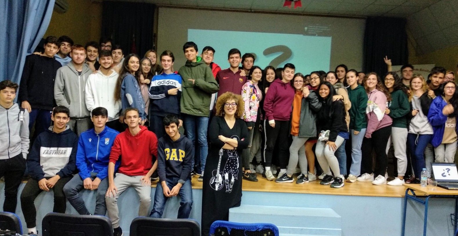 Pacheco les contó cómo ha vivido estos años en la ciudad atendiendo temas tan autóctonos como las bodegas o el mundo agrario, un mundo que desconocía al ser de fuera y del que “tuvo que ponerse las pilas y estudiar mucho”, tal y como refirió a los estudiantes. Viendo esas vivencias con perspectiva apuntó que luego se ha dado cuenta de que por ser mujer le ha resultado más difícil integrarse en ese ámbito y tener un mayor reconocimiento. No obstante, recomendó a los alumnos y, sobre todo a las alumnas, que estudiaran lo que quisieran para perseguir su vocación: “Ya que si te ves capaz lo acabarás logrando”. Esta charla es una de las actividades que realizará el centro en este mes de marzo para conmemorar la efeméride del 8-M, el Día de la Mujer, que en el centro de San Benito ha pasado a ser el Mes de las Mujeres.