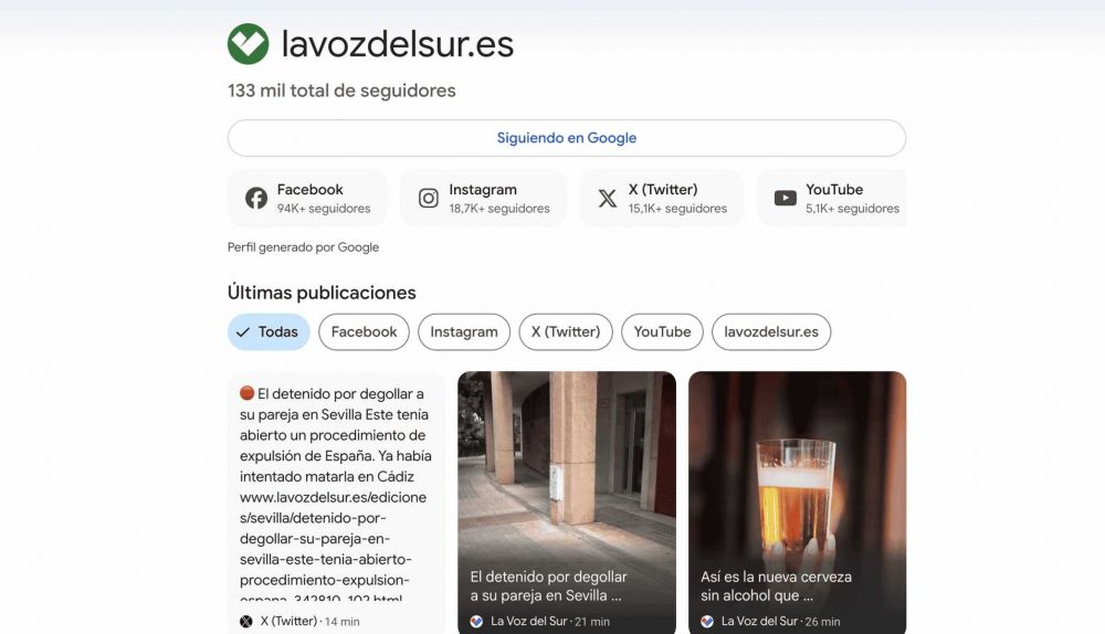 En las próximas semanas, además, el propio botón de Seguir estará disponible directamente en las noticias que aparecen en Discover, lo que permitirá incorporar lavozdelsur.es de forma aún más ágil y sin salir del panel de actualidad.