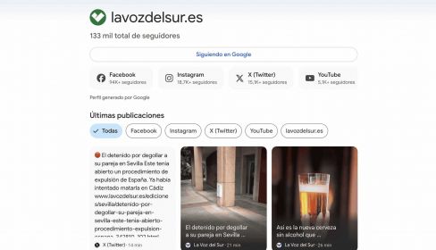 lavozdelsur.es seguirá estando disponible, como siempre, en su página web, en la revista impresa El Papel de La Voz, y en sus redes sociales. Pero esta novedad representa una oportunidad de acercar aún más nuestros contenidos a la audiencia: al pulsar Seguir, las crónicas, columnas de opinión, investigaciones y piezas de esta cabecera digital andaluza aparecerán de forma destacada en tu Discover.