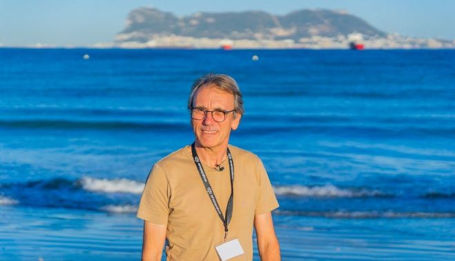 Steve Allen se ha fotografiado en la playa de El Rinconcillo con Gibraltar al fondo y ha expresado su satisfacción por colaborar en un nuevo proyecto de Márgenes y Vínculos. Allen ha dicho que el desamparo, el maltrato y la necesidad de una familia de acogida para muchas niñas y niños no es un problema exclusivo de Andalucía o España, sino que se vive en todos los países del mundo.