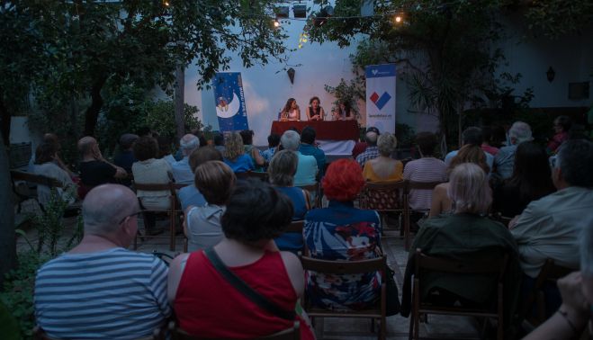 Fallarás comenzó la noche en Jerez deslumbrada por la mezcla entre el color añil de las paredes y la buganvilla del jardín. La velada reunía todas las claves para ser mágica: un lugar de ensueño, una voz libre y un público curioso por conocer a fondo a la primera protagonista de Los Veranos de lavozdelsur.es, que han contado con el apoyo y patrocinio de Librería Luna Nueva, NH Hotels y Tabanco El Pasaje. Después de dimitir como directora de Diario16, en su versión digital, hace ya un tiempo, Fallarás, que en la actualidad colabora para CTXT, Público, Las Mañanas de Cuatro, y varios medios latinoamericanos, explicó por qué se fue de ese último cargo.