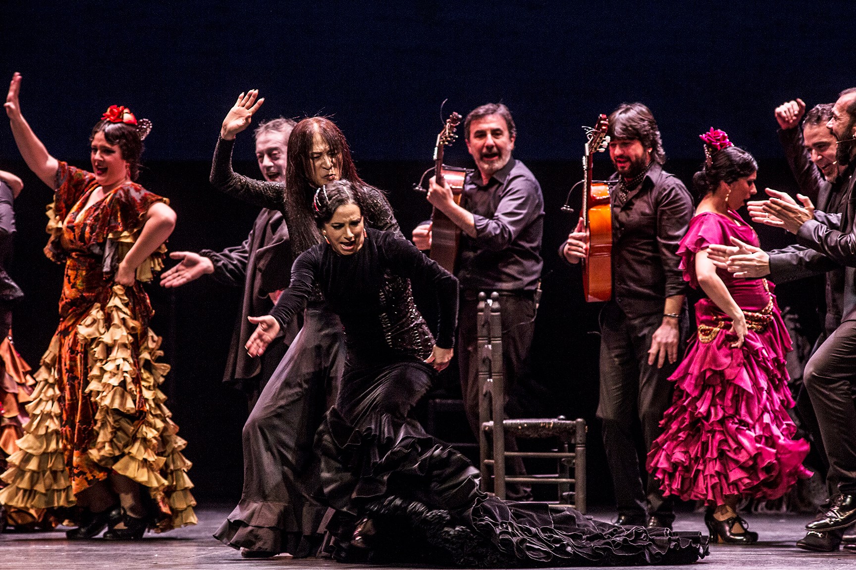 Como en La gran ola de Hokusai, hay momentos en los que es tanta la dimensión e intensidad que adquiere lo vivido que pareciera que va a estallar contra las tablas: Yerbabuena es la mejor Yerbabuena que recordábamos por soleá; José Valencia edifica un monumento al buen cante con su versión de Se nos rompió el amor para que dance quebrada, con mantón rojo, la granadina; Chicuelo teje una bucólica partitura que reviste con exquisitez y gusto el libreto de Paco López y los movimientos coreográficos de Latorre; el maestro valenciano se marca un paso a dos con Kojima con el coro a bocca chiusa de Madama Butterfly de inexplicable sutileza; Poveda, que bien podría ser aquí Farina, vuelve a arrimarse a Kojima para despedirlo por una malagueña, ya con la voz rota, del samurai Cristian Lozano... En fin, destellos de luminosidad, plasticidad y belleza difícilmente descriptibles sin haberlos vivido en el teatro.