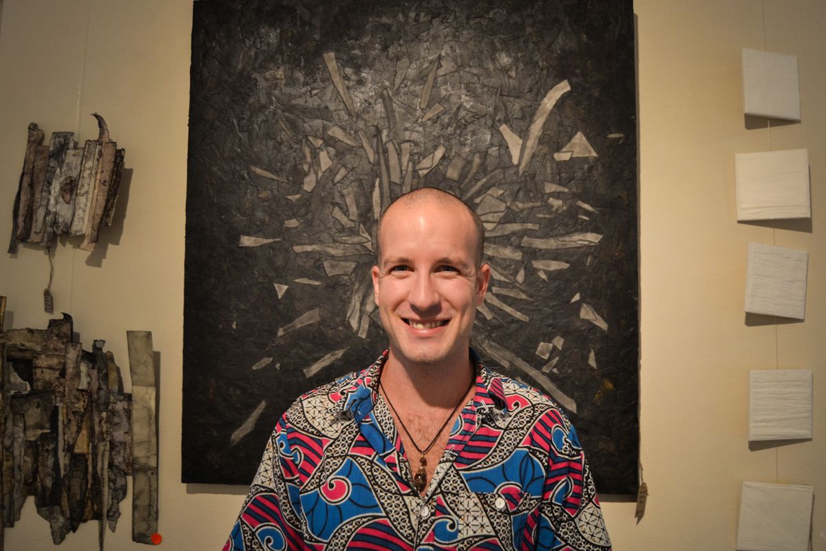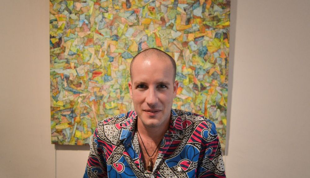 Guino García frente a una de sus obras de la exposición 'Fractales'. FOTO: CLAUDIA GONZÁLEZ ROMERO.