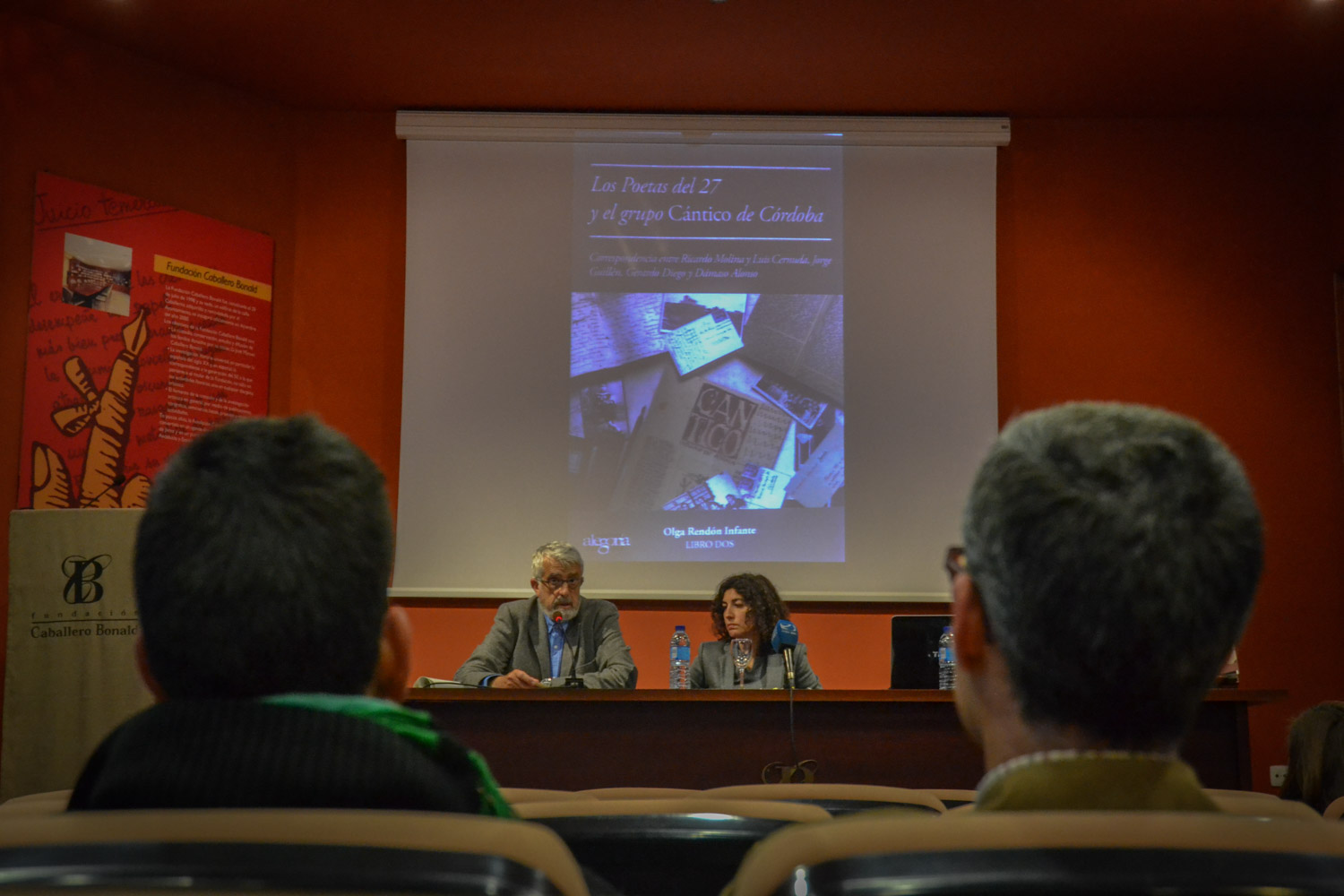 El profesor Manuel Ramos comenzó la presentación con la lectura de un poema de Vicente Aleixandre, dedicado a Cernuda, un poema que describe la alegría de las gentes el día de la proclamación de la República y que nos remite al grupo Cántico, que es una revista y una estética. Este grupo literario de Córdoba, con Ricardo Molina al frente, pretendía enlazar con la Generación del 27. El libro de Olga Rendón es producto de una tesis doctoral en la que se transcriben y analizan las cartas entre Ricardo Molina y varios poetas, Aleixandre, Cernuda, Guillén, Gerardo Diego y Dámaso Alonso. Manuel Ramos nos contó cómo se enteró del descubrimiento de Olga y cómo le propuso realizar esta investigación. Recordó cómo Olga le contaba, emocionada, ese contacto con las cartas en Ibiza. Los epistolarios son esenciales para los estudios literarios, precisó el profesor. De hecho, las investigaciones sobre las revistas literarias tienen conexión directa con los epistolarios. Pero hay que saber tratarlos. Hay que saber clasificar las cartas y tener un criterio adecuado. Gracias a las cartas podemos conocer los entresijos de la creación. Por eso es tan importante conocer qué cartas son esenciales y cuáles no. Olga ha sabido dar el tratamiento adecuado a este tesoro, dice Manuel Ramos. Ha tenido la paciencia y la sabiduría necesarias para ser minuciosa en la clasificación y el análisis. Ha rescatado este diálogo de la memoria. Sin investigadoras como ella, estas conversaciones se perderían. Y queda mucho trabajo todavía.