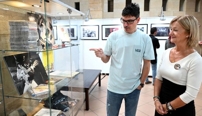 La delegada de Juventud, Carmen Pina, y el delegado de Educación, José Ángel Aparicio, han inaugurado esta muestra junto a Manu Benítez, hermano del que fuera uno de los fundadores del grupo Los Delinqüentes.