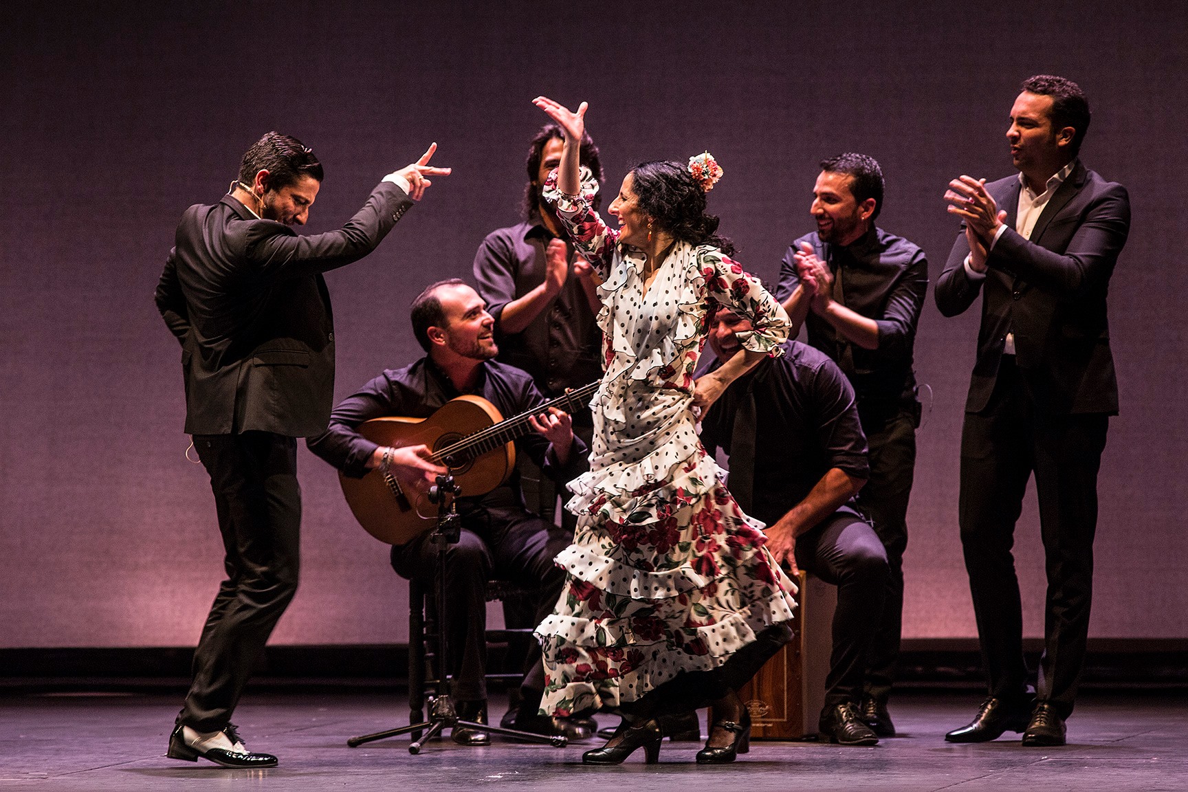 Mercedes Ruiz ha recuperado el gran formato que ya exploró en Perspectivas (2011) y Ella (20015) aunque esta vez devolviendo su baile al centro. Ya no tiene que recorrer la periferia que anduvo indagando estos años atrás junto al notable impulso que le ha aportado a su carrera la dirección escénica de Paco López. También bajo su batuta en esta ocasión, la intérprete ha tratado ahora de ir al meollo de la cuestión, sin más rodeos que su expresión corporal y contar con buenos artistas rodeándola para hacer un buen espectáculo de flamenco. A fe que el objetivo se cumple con creces. El baile no da tregua pese a que los interludios para los cambios son importantes en el conjunto. Tenemos esa sensación porque Mercedes –y por extensión Paco- imprimen a la escena la suficiente intensidad como para que el cante se transforme en narración y escenografía. De hecho, ésta no existe, ya que apenas unos juegos de luces complementan la caja negra. Todo lo demás parte de una reunión de muchos quilates. No más, pero tampoco menos. Del primero al último, de los dos palmeros –enorme Javi Peña- a la voz de Jesús Méndez -¿tuvo problemas de sonido en algún momento?-, todos brillan.