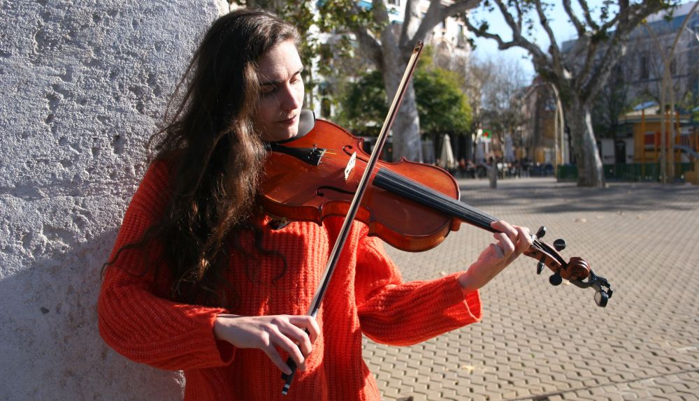 Irene Zugaza, cantautora afincada en Sevilla tocando su instrumento, la viola.
