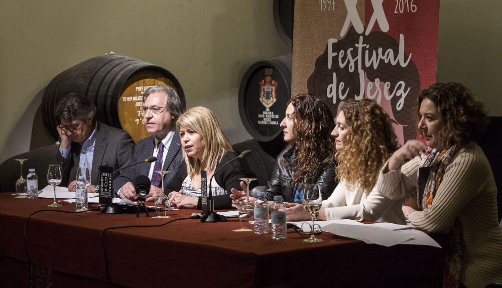El acto de presentación del Balance del XX Festival de Jerez ante los medios de comunicación, presidido por la alcaldesa de Jerez , ha contado además con la presencia de Francisco Camas, teniente de Alcaldesa y delegado de Dinamización Cultural; Remedios Palma, delegada territorial de Cultura, Turismo y Deporte de la Junta de Andalucía; María de los Ángeles Carrasco, directora del Instituto Andaluz del Flamenco; Isamay Benavente, directora del certamen; y César Saldaña, director del Consejo Regulador del Vino, en cuyas instalaciones se ha desarrollado esta comparecencia.