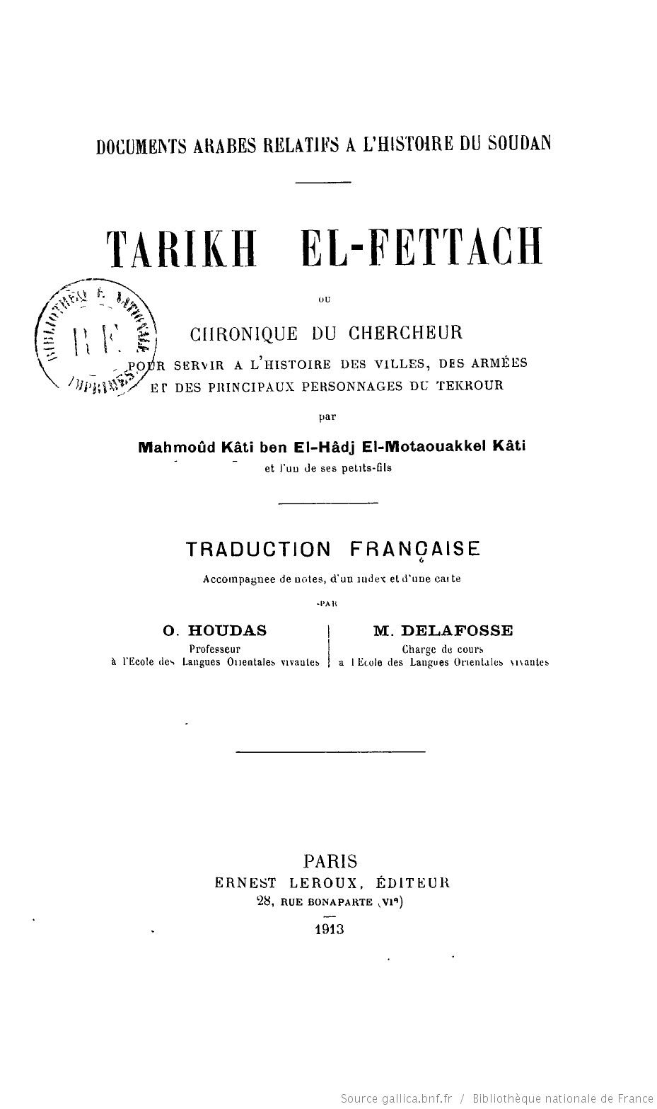 Los Kati se emparentaron de esta forma con la familia imperial y se integraron plenamente en la sociedad Songhay Mahmud Kati recibió una exquisita educación de manos de Muhammad ben Abybakr Sylla, el futuro emperador Askia Muhammad del Songhay y entre las materias dadas destacaban las letras, el árabe, la gramática, la filología, la lexicografía, el derecho, la historia, la genealogía, las matemáticas, la astronomía, la medicina y la filosofía. Esto impulsó a este Kati a escribir una variada obra intelectual, de la que destaca el “Tarikh el–Fettach”, que nos proporciona la historia de los grandes imperios negros de Ghana, Mali y el Songhay, así como de la aniquilación de los judíos de esta región africana o la conquista posterior de Yuder Pachá.