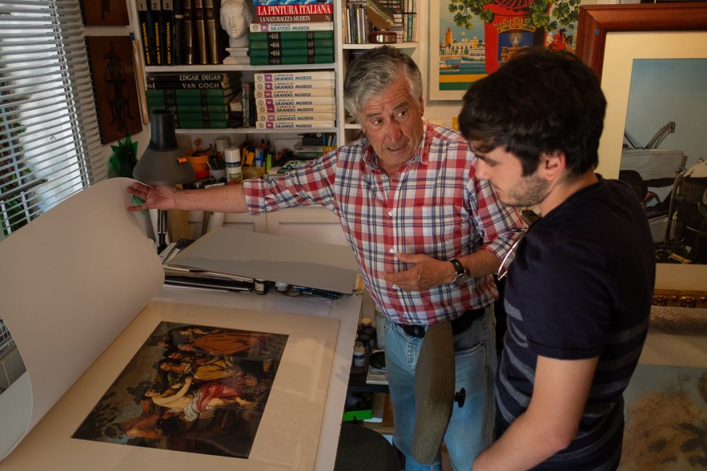 Juan Herrador enseña su "interpretación" de 'Los Borrachos' de Velázquez. FOTO: MANU GARCÍA.