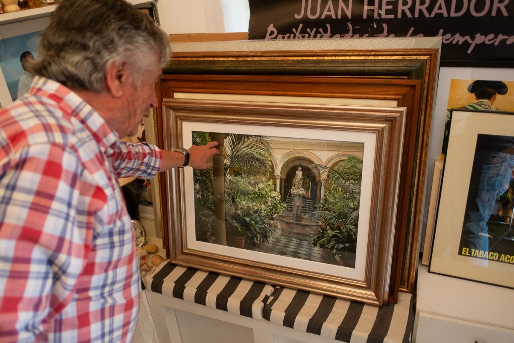 Al otro lado, enseña unas láminas en las que utiliza el puntillismo. En un marco, saca tres de sus primeros dibujos, cuando era un adolescente y que utilizó con once o doce años para entrar en Dibujos Mamelón. Y por si fuera poco, en su móvil empieza a enseñar y enumerar sus diseños para bodegas. Un catavino y una rosa en una publicidad de Iberia. Recuerdos de otra época perdidos en el tiempo de un Jerez que era internacional y que Juan Herrador retrató para la posteridad. La dimensión, amplitud y calado de su obra no tiene parangón y el pintor, en tono más serio que bromista, no lo llega a reconocer: "En Jerez había y hay excelentes profesionales del diseño y de la pintura; no me incluyo, no".