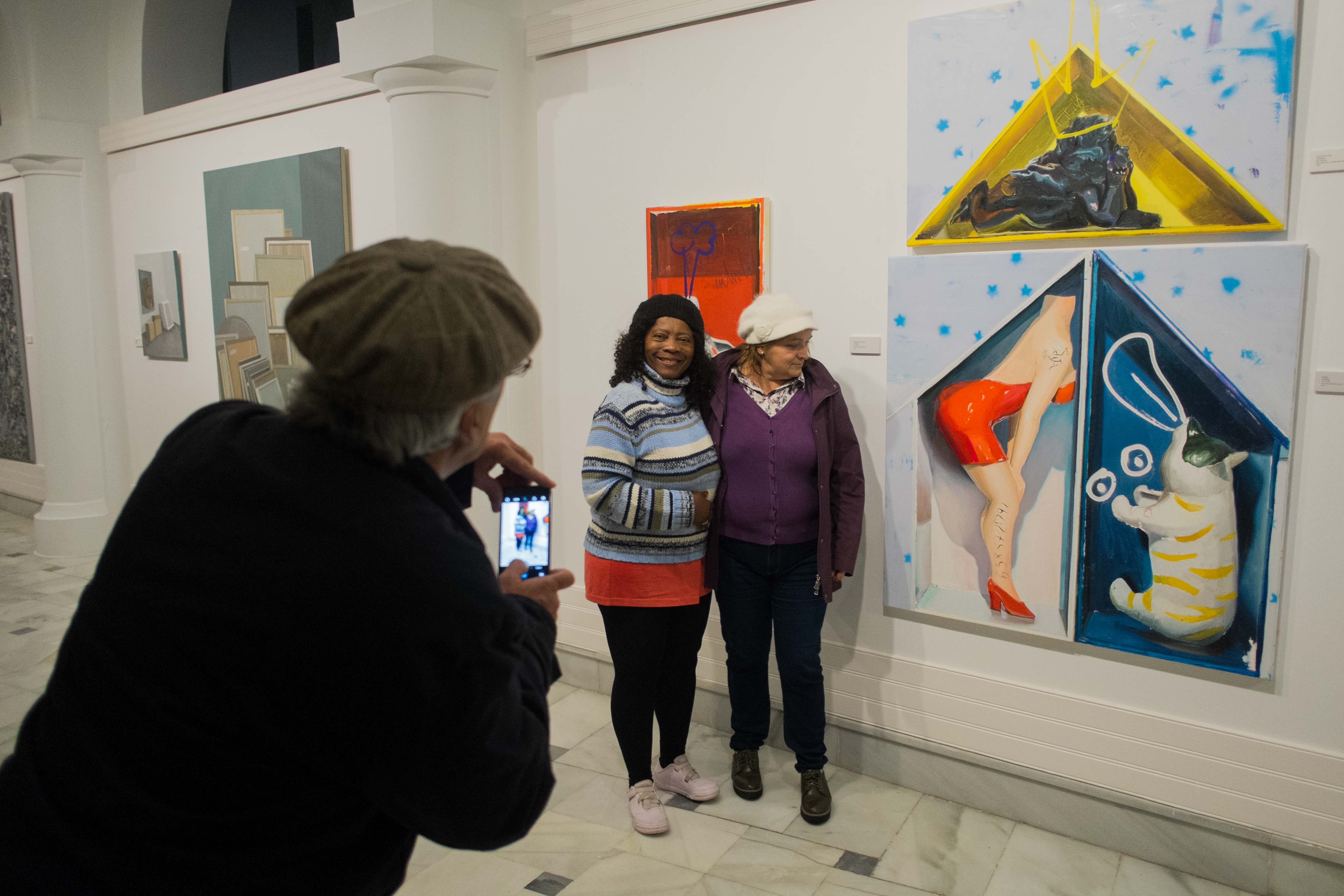 Magdalena Bachiller utiliza los escombros de los espacios arquitectónicos para acercarse a la geometría de la naturaleza, en tinta china. Ana Barriga habla de temas trascendentales (como la muerte, el amor o el sexo) a través de “objetos lúdicos”, a los que da un nuevo significado, un nuevo contexto, con óleo, esmalte, rotulador y spray. Rocío Cano nos muestra las ruinas de Baelo Claudia, en lienzo con técnica mixta. Carmen Chofre y Carmen Guerrero exhiben su maestría en el retrato: captan la mirada de las mujeres, con nombre propio, y con estilos diferentes. Las obras de Gloria Martín hacen referencia al trabajo de las artistas, a lo que hay detrás, a los sueños, y quizás a las decepciones. Magdalena Murciano pinta estructuras complejas, composiciones repetitivas, caóticas y enrevesadas, de las que brota cierto orden, quizás para desentrañar los misterios del mundo, de la vida en sí misma. Luisa Porras trabaja con el vidrio, el algodón y la madera. La materia habla por sí misma. La mera presencia del tejido sugiere tanto sensaciones orgánicas, como la historia condensada de la cruel opresión, o el peso de la culpa, soportado por el tejido elástico, fruto del miedo y el sufrimiento…