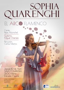 La Sala Compañía acogerá este jueves el concierto sinfónico flamenco de Sophia Quarengui, a partir de las nueve de la noche. Durante el espectáculo, llamado El arco flamenco, acomparán a Quarenghi Pepe Alconchel, al cante, Miguel Chamizo, a la guitarra, y Carlos Merino, a la percusión.