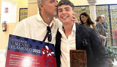 Una de las acciones que lleva a cabo es este concurso dedicado a los guitarristas especializados en el acompañamiento. Y es en esa especialidad donde el joven jerezano, que cuenta con tan solo 16 años de edad, consiguió el primer premio de un certamen en el que colabora Acciona y apoya la Consejería de Cultura y Patrimonio Histórico de la Junta de Andalucía. Ha participado en otros concursos pero es el primero “serio que entro y lo gano. Es un premio a la constancia de estos años; al día a día con la guitarra junto a la formación con mi padre y con el profesor”.