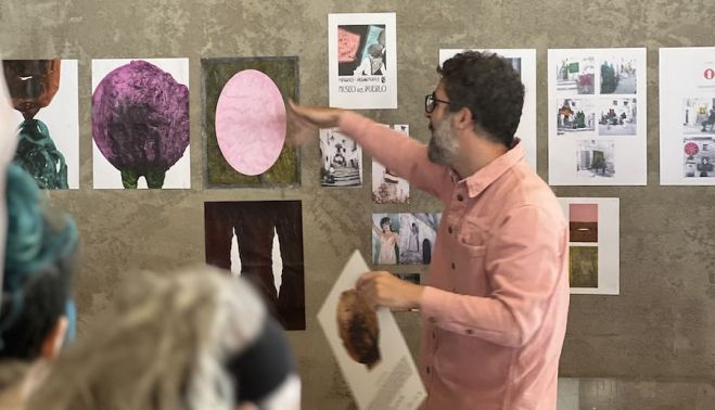 Palacios explicaba su proyecto titulado Museo circulante de Vilafamés a todos los que se pasaron por la casa Abadía. Además de las obras que se podían visitar en el estudio, el residente ha realizado una serie de interacciones por todo el pueblo vinculando y acercando así el arte al público y viceversa “ArtRes me ha dado la oportunidad de profundizar en mi proceso de trabajo. Mi objetivo es el de acercar la colección del Museo de Vilafamés al mayor número posible de personas”.