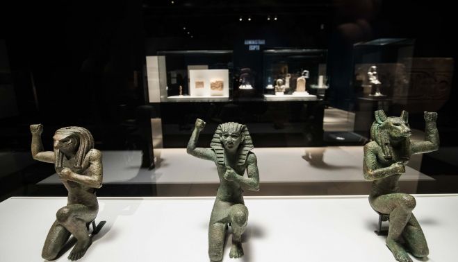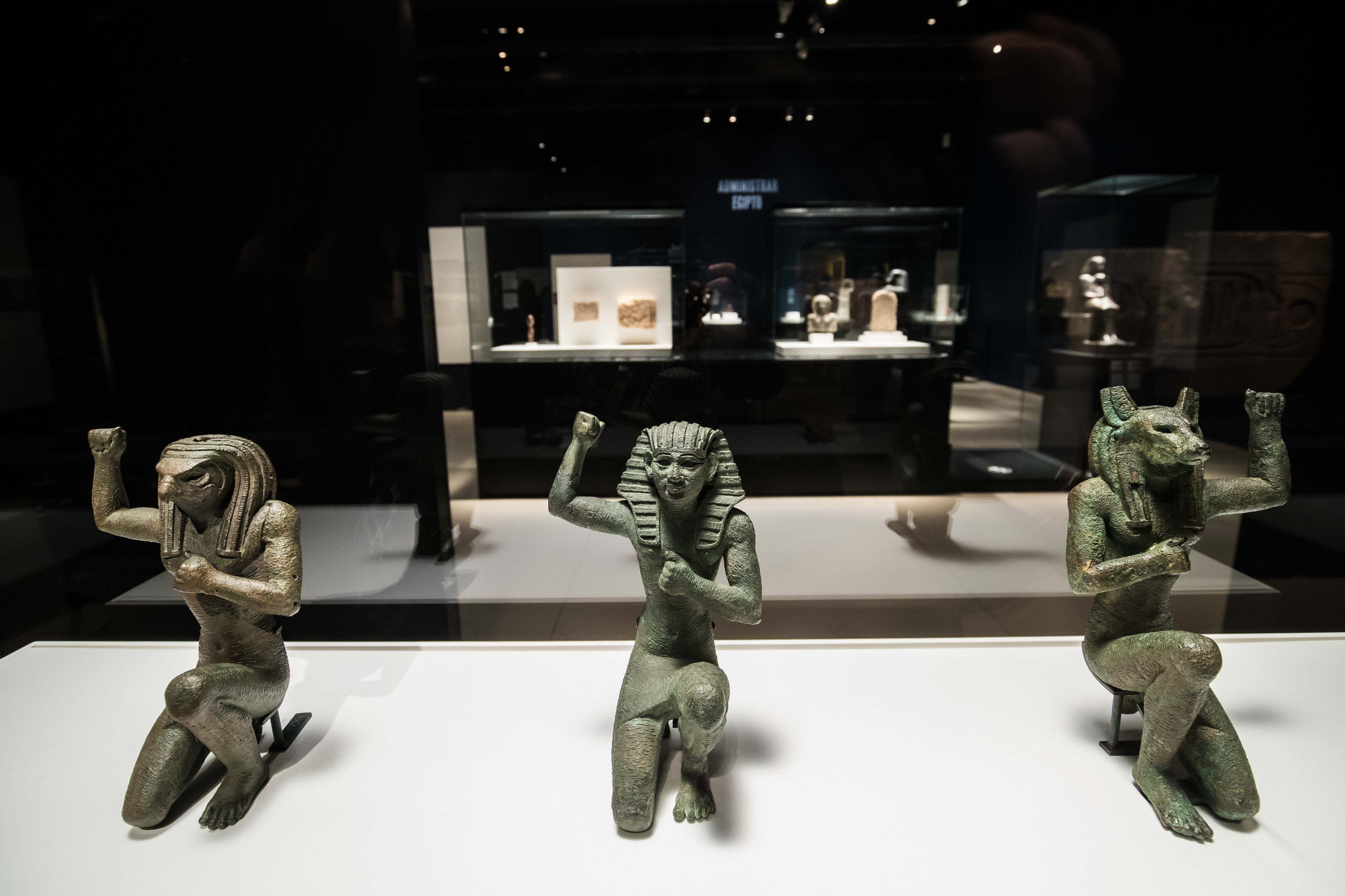 Destacan varias piezas únicas: la figura del dios halcón Re-Haractes, una cabeza impresionante del faraón Tutmosis III de limolita verde, unas losetas del palacio de Rameses III o un busto de mármol de Alejandro Magno.