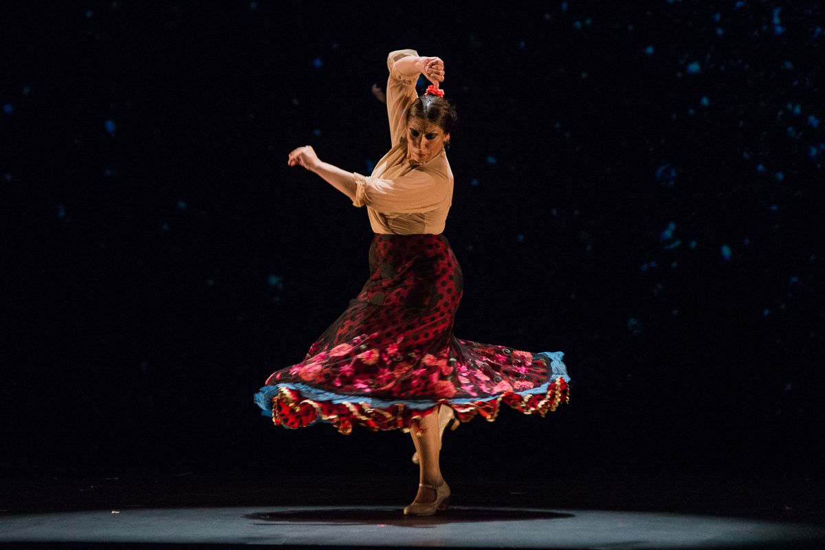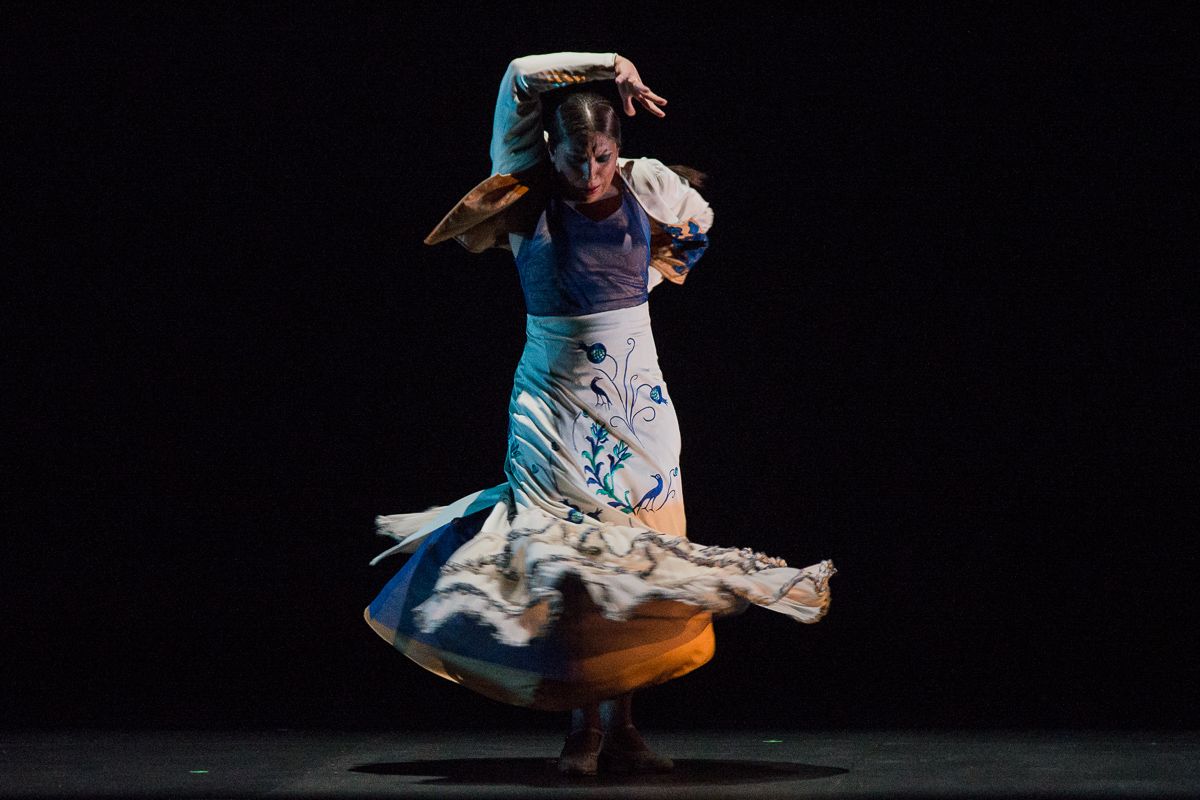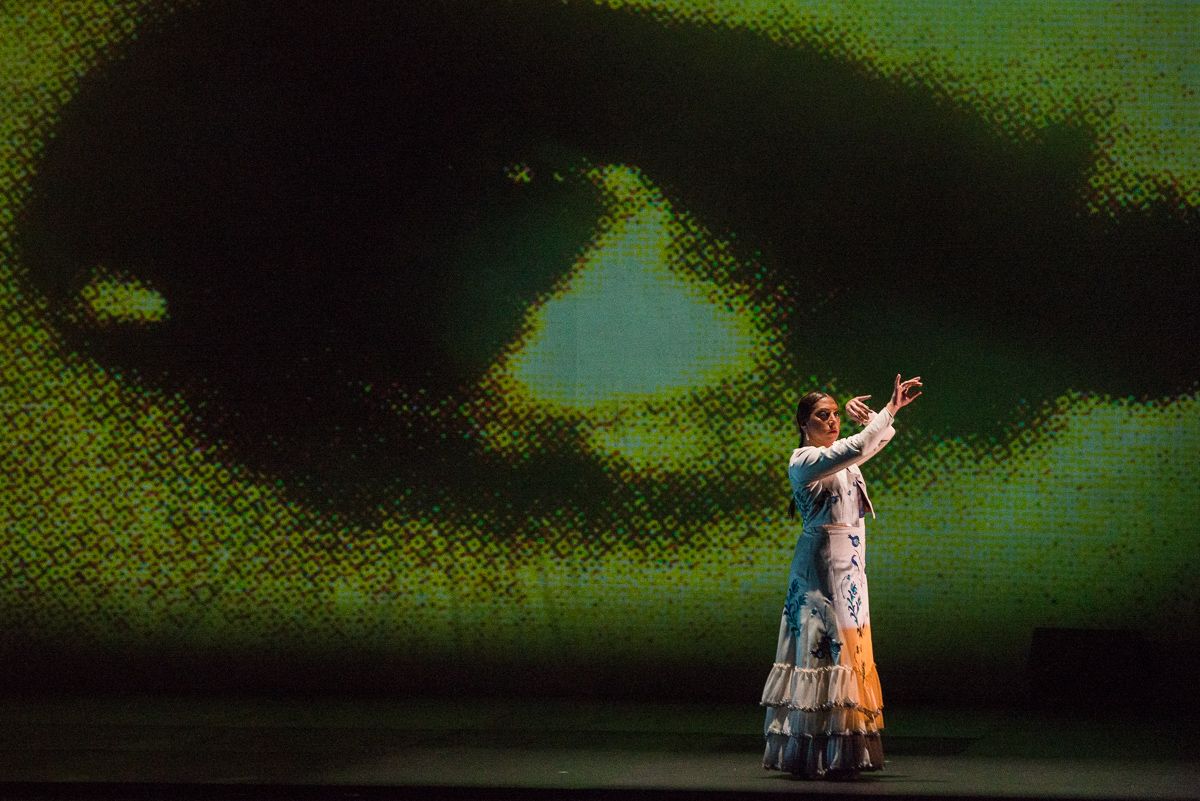 De fondo, unos collages y un mapping con ínfulas que en ningún momento conectan con lo que sucede en las tablas (ni, por extensión, con el que suscribe) y que, se supone, evoca a la intelectualidad de la tierra natal de la protagonista de la función. Quizás el fallo sea ese: querer expresar la danza flamenca en el sentido más primitivo y salvaje, el fuego que se vivía en las cuevas del Sacromonte —hoy parque temático de tablaos— revistiendo ese deseo, de forma tangencial, de pieles que no abrigan y alimentos que no sacian. Querer y no poder con recursos escénicos demodé (ese recitado en off del final tan naïf) y una estructura pretendidamente teatral que, desgraciadamente, hace aguas. Y cosas como esa, en lugar de engrandecer su baile, acaban por fagocitarlo.