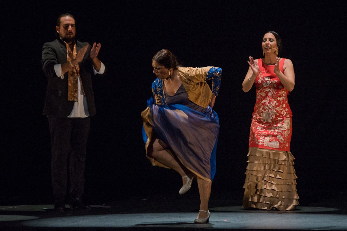 En este montaje insiste en no corregir los defectos de aquel trabajo, con la diferencia de que su danza tribal se vuelve más discreta que la que le recordamos entonces. Perdida en transiciones interminables para los cambios de vestuario y más preocupada por las marcas y el aplauso por la vía rápida —especialmente en los sucesivos replantes de la larga intro por bulerías— que por trascender y regar el escenario de verdad. Poco hay que decir de la flagrante desconexión entre lo que se plantea en la literatura del espectáculo y lo que realmente, y de forma previsible y más o menos tediosa, sucede en escena: una correlación de cuatro números coreográficos comandados por el baile racial y de tripas de La Moneta e intercalados por piezas (eternas en algún caso) netamente flamencas de cante y guitarra —incluido el homenaje al Camelamos naquerar del maestro Mario Maya en los bordones de Paco Cortés—.