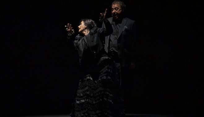 Y yo me quedo en el cenit claroscuro de Luis Moneo cantándole a corazón abierto por soleá por bulerías a Yerbabuena. Un coloso de metal inconfundible en las soleares, capaz de activar la mecha para que implosione el baile de estricto control corporal, sensualidad y rabia de Eva. Parafraseo: el día que la eches de menos, vas a salir a buscarla como un caballo sin frenos. Y es cierto, el día que Eva Yerbabuena deje de alumbrar su danza y presentar sus obras en el Festival de Jerez, éste será otra cosa, pero ya no será el mismo Festival. Porque cuando arriba está ella hay expectación, magia e intención, y, aunque a veces incomode, o narcotice, o ambas cosas a la vez, sus montajes siempre acaban hechizándonos. Como si nos obligara a rebuscar en nosotros mismos y en nuestras soleares.