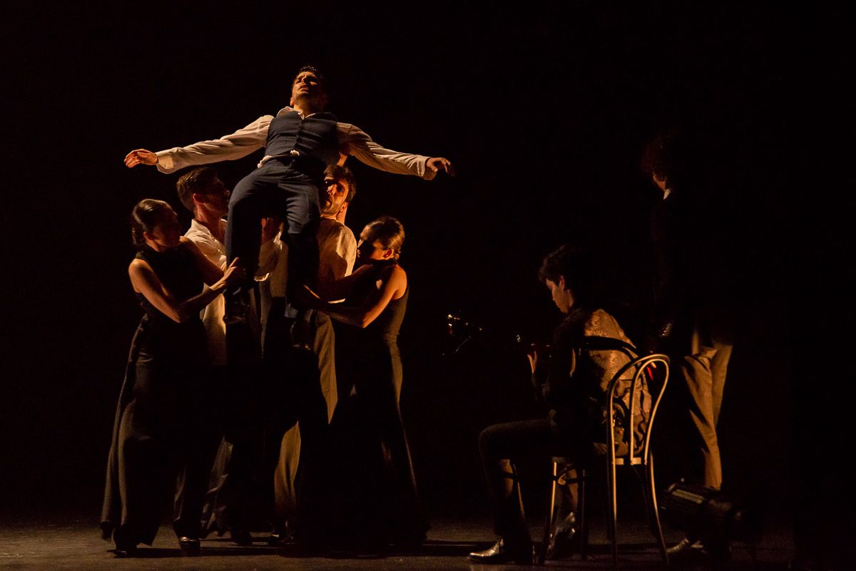 Corre, completamente enajenado, desnudo por las calles de Londres, pasa por el altar de la iglesia de Saint Martin in the Fields, en Trafalgar Square, para bailar por farruca, y acaba recibiendo visitas y abrazos rotos hasta que fallece más de veinte años después en el manicomio de Epson. Como un fantasma, dibuja con tiza el sombrero y acaba con una máscara antigás estéril, incapaz ya de protegerle del veneno de la danza que acabó consumiéndole. Esta historia, a ratos truculenta, enigmática, de tensiones entre poder y creación, ya fue abordada hace más de quince años por el Ballet Nacional de España. Un encargo que entonces asumieron Javier Latorre, Mauricio Sotelo y Cañizares, y que pudimos ver en la apertura del Festival de Jerez de 2005.