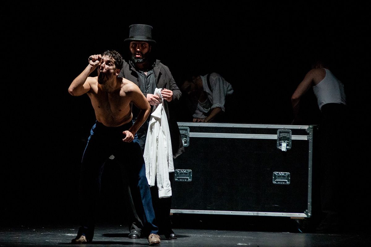 Dos años más tarde, irrumpirían como una corriente de aire fresca en este mismo certamen Rafael Estévez y Valeriano Paños. Lo hacían con su suite Muñecas, una impactante obra mayor sobre el arte y el poder, el cruel paso del tiempo, la férrea disciplina y la serialización del artista. Más o menos, las reflexiones que siguen permaneciendo invariables en la obra de estos autores. Ahora, tantos años después, mantienen sus constantes vitales intactas en un alucinado espectáculo que en el cine podrían haber firmado Lynch o Cronenberg. La historia de un desgarro, sin apenas concesiones —solo algunas humorísticas—, con una densidad que la hace por momentos irritante, con un metraje a todas luces excesivo, pero con una potencia visual y plástica hipnótica, con unas coreografías que nos llevan al Laocoonte, a Matisse, al expresionismo alemán, al ragtime, a Pina Bausch, y a la Fuenteovejuna de Gades.