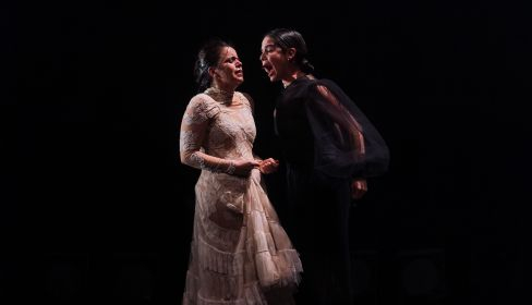 Sin embargo, si el anterior espectáculo se defendía casi por entero con el baile voraz y atávico de esta gaditana, ahora brinda un contundente paso adelante gracias a la inconmensurable labor de sus acompañantes en la tabla. Y aunque la sinopsis hable de una única soléa que entronca con el origen de los tiempos, más bien se trata de ser piedra, ser arrojada al mar y recuperar el centro de gravedad. Un tren inferior que mueve María a la velocidad de la luz si quiere, con entre otras cosas su ya célebre carrerilla, o que congela bajo la luz fluorescente de una morgue —gran trabajo de Antonio Valiente en el diseño de iluminación—.