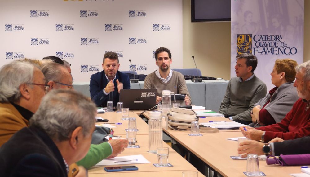 Los principales representantes del tejido asociativo del flamenco han mantenido una reunión de trabajo con el secretario general de Innovación Cultural y Museos de la Junta de Andalucía, José Ángel Vélez, para analizar y dar a conocer las propuestas de la Consejería de Cultura y Deporte para el presente año, en un encuentro celebrado en la sede de la Cátedra de Flamenco de la Universidad Pablo de Olavide en Sevilla.
