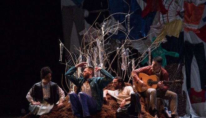 El montaje, con su aire posmoderno y millenial, o todo a la vez, apenas da espacio a la música de Javier Ibáñez (una pena), hay una escenografía y un concepto del espacio escénico tan pretencioso como estéril, un apunte teatral con los indigentes-refugiados del inicio que parece que romperá en algo y no sucede nada, un bailaor afectado y sobreexcitado —técnicamente de diez, eso sí; hábil en la búsqueda del efectismo— que parece fuera de contexto, y una monotonía de lluvia en los cristales que no la salva un concepto más próximo al onanismo mental —entendido como coitus interruptus— que a la danza que pudiera venir.